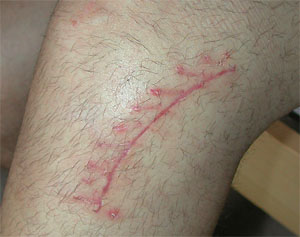 Weiteres Bild von St. Martin 1 Das hier unten ist nicht der heilige Martin, sondern Sebi - und der war mit Janine und Barbara eines schönen Samstages zu Besuch und machte die Fahrt zur besten Apfel-Rhabarber-Wähe (als Abwechslung zu Voltaren, Fraxiparin, Neurontin, Tramal und all dem Zeug wunderbar) der Alpen erst möglich. Aber zurück nach Valens, denn ich war ja nicht in einem Ferienlager. Im Zimmer D211... ... mit dieser Aussicht vom Balkon (auf den Calanda, diesmal von der anderen Seite) bei schönem Wetter... ...hauste ich noch bis Ende Monat. Vor lauter Therapien, Trainings, Kälte- und Fangopackungen, Visiten und Essenszeiten blieb kaum Zeit für anderes: Montag bis Freitag von 8 bis 17 Uhr war in der Regel volles Programm angesagt. Und dazu gehörte vor allem als Highlight des Tages Rixt Althofs berühmt-berüchtigte Physio (es stimmt, Niederländerinnen von den friesischen Inseln greifen gerne mal zum Foltergriff). Diesen wahrhaftig kräftigen Knetereien zum Trotz: Das Knie sah am 24. Mai auch wieder aus wie ein Knie, die Muskeln waren auch wieder zahlreicher vorhanden (Tip für Betroffene: Bitte sich nicht wundern, wenn Muskeln nach nur einer Woche ohne Belastung fast schon ganz verschwunden sind!), allerdings war der Bauch wegen der erstklassigen Menüs im Klinikrestaurant auch etwas grösser geworden, da nütze alles Trainieren nichts. Dafür sah der nun fünfeinhalb Wochen alte Reissverschluss ganz passabel aus... ... und ab dem 25. Mai galt dann wieder der Berner Alltag - oder zumindest der Versuch, sowas wie Alltag hinzukriegen: Wie bekomme ich ein Glas Wasser aus der Küche in die Stube? Wie arbeitet man, wenn das Knie nach einer halben Stunde sitzen weh tut? Wie duscht man in einer kleinen Dusche, wenn man sich nicht bücken kann und keinesfalls ausrutschen darf? Wieviel Kraft braucht es, an Krücken den Nydeggstalden rauf und runter zu kommen? - Aber etwas wird voll ausgekostet werden: Wieder Chardonnay trinken. Endlich mal immer durch die vorderste Bustüre einsteigen. Bis nach Mitternacht ungestört fernsehen. In einem grossen Bett liegen. Das Licht löschen, wann man will. - Und der Aareschwumm ist trotzdem möglich: Ausgiebige medizinisch-klinisch überwachte Tests im Therapiebad haben bewiesen, dass ein Schwimmflügeli am einen und eins am anderen Ende der Krücken reichen, diese über Wasser zu halten und beim Ausstieg wieder aus dem Wasser zu hieven. Ja und wie das ganze denn in der Praxis tatsächlich aussah, das steht hier... Und die Dankesliste geht weiter mit den guten Seelen von Valens. BIG Thanks to: