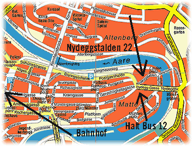 12 Richtung Schosshalde, bei Station Nydegg aussteigen, Strasse überqueren.