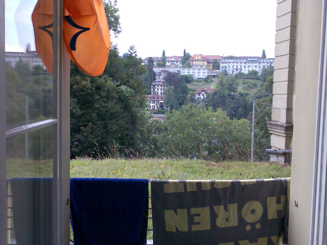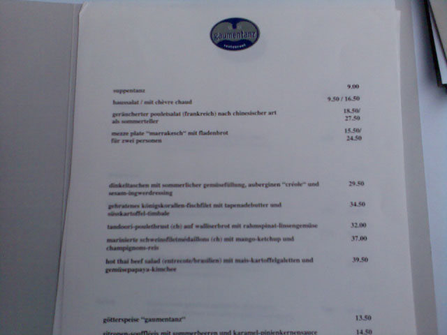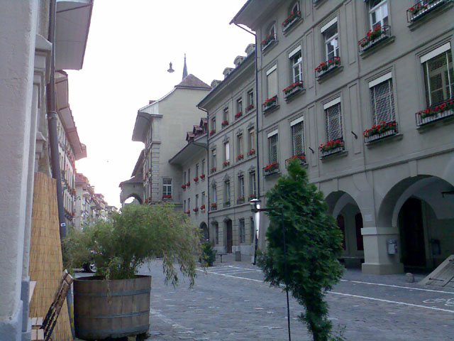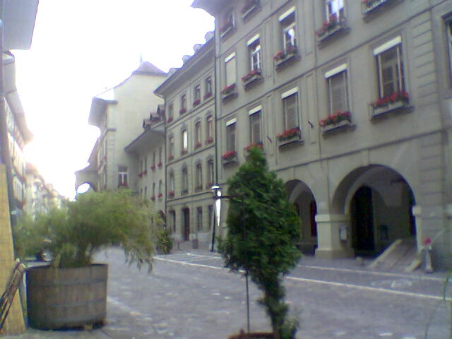 An den Bildern wurden keine Farbänderungen vorgenommen. Zugegebenermassen war die Testanlage schwierig: Ein schummriger Abend mit Gewitterwolken am Himmel, schwierige Lichtverhältnisse in den Berner Altstadtlauben. Gerade bei wenig Licht oder bei Nahaufnahmen übertrifft das gute alte 6230 das brandneue 6233 fast... Die Bilder überzeugten also nicht immer - dafür sei das wunderbare Essen im Restaurant Gaumentanz wärmstens empfohlen! Video: Mit dem Fahrrad durch die Berner Altstadt à la Einstein-Ausstellung... 30 Sekunden, 640x480, 7.8 MB, Format 3gp Und nun Vorhang auf für die Testbilder! |
