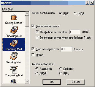 Nachtrag vom Januar 2004: Es gibt nun einen weiteren Grund, keine HTML-Mails zu versenden. Antispam-Programme klassieren solche eher in die Kategorie "Spam" (also: unerwünscht, sprich zu löschen) als unformatierte Mails. Das Tool "Spam Assassin" zum Beispiel gab bei einem HTML-Mail folgendes aus: "Content analysis details: NO_REAL_NAME (0.8 points) From: does not include a real name TO_EMPTY (2.6 points) To: is empty HTML_40_50 (1.1 points) BODY: Message is 40% to 50% HTML HTML_MESSAGE (0.1 points) BODY: HTML included in message HTML_FONT_BIG (0.3 points) BODY: FONT Size +2 and up or 3 and up HTML_FONT_COLOR_BLUE (0.1 points) BODY: HTML font color is blue MISSING_HEADERS (0.5 points)" Fazit: Je mehr HTML, desto grösser ist die Chance, dass Ihr Mail den Empfänger nie erreicht oder von diesem nicht gelesen werden kann... Patrick fragte am 12.1.2002: "Ich erhalte oft Attachments namens winmail.dat - was soll das?" Antwort: Da zitiere ich doch gerne andere: "Die Datei winmail.dat deutet auf einen Fehler hin, der ensteht wenn eine Mail von OL[Outlook]2000 im Rich Text Format (RTF) verschickt wird, das dabei benutzte TNEF kann vom Empfänger nicht interpretiert werden. Abhilfe: Entweder das Standardformat zum Senden von Nachrichten auf 'Nur Text' umstellen, oder in den Kontakten bei dem problematischen Empfänger 'e-mail als nur-Text senden' aktivieren." Auf deutsch: Sagen Sie Ihrem Mailpartner, er soll doch bitte keine Formatierungen in seinen Mails verwenden (fett, kursiv, farbig usw.). Mehr dazu siehe obige FAQ-Frage... oder hier beim PC-Tipp. Extractors für Winmail-Dateien gibts z.B. hier - damit lassen sich die Inhalte dann doch noch darstellen. Claudia fragte am 8.8.2002: "Kann man beim Einlesen der Post die Attachments auslassen? Wenn ich mit Laptop im Ausland bin, möchte ich nicht alle Fotos, die ich zugeschickt bekomme, vom Server herunterladen. Das mache ich dann mit dem Heim-PC." Antwort: Kein Problem. In jedem guten Mailprogramm kann man in den Optionen die maximale Grösse der zu downloadenden Mails bestimmen. Zudem kann man sagen, ob die Mails nach dem Download noch auf dem Server verbleiben sollen. Hier Beispiele für Eudora (Leave mail on server, Delete from server after ... days, Skip messages over ... kb in size):