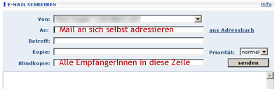 Und nochmals: Je mehr Formatierungen Sie verwenden (die Schriftart eines Mails ist VÖLLIG Wurst, wichtig ist der Inhalt), desto grösser ist die Chance, dass Ihr Mail nie ankommt oder nicht gelesen werden kann, da das Programm des Empfängers Ihre Formatierungen nicht versteht. GMX Einfach alle EmpfängerInnen in die Zeile "Blindkopie" schreiben, das Mail an sich selbst adressieren.
