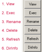 Diese stehen gesondert für beide Spalten "Dateien auf Harddisk" und "Serverdateien" (am rechten Rand der Spalten) zur Verfügung. Wenn ihr also auf dem Server etwas ändern wollt, müsst ihr auch die Buttons rechts dieser Spalte benützen. Die Buttons 1, 2 und 6 werden für unseren Kurs nicht gebraucht.
