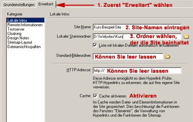 Übung 2: Eine Site definieren Achtung: Diese Übungen werden seit Jahren nicht mehr aktualisiert und enthalten teils Aussagen, die inzwischen völlig veraltet und überholt sind. Sie sind nur noch aus Archiv- und Nostalgiegründen hier.