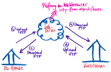 Nun denn: Sie wissen nun also, wie man Dateien auf den Server schiebt (und dort mit dem Browser prüft) sowie vom Server wieder auf die Harddisk. Mit anderen Worten: Der Server ist nicht nur der Ort, wo Ihre Daten im Web abrufbar sind, sondern auch eine Drehscheibe - so können Sie immer auf dem neusten Stand bleiben. Also: