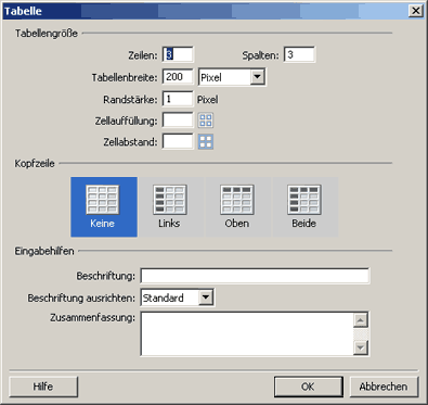 Übung 4: Tabellen einfügen, Anfänge Achtung: Diese Übungen werden seit Jahren nicht mehr aktualisiert und enthalten teils Aussagen, die inzwischen völlig veraltet und überholt sind. Sie sind nur noch aus Archiv- und Nostalgiegründen hier.