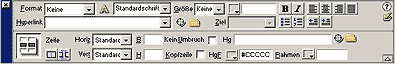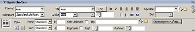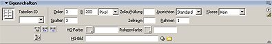 Dreamweaver MX 2004 zeigt Ihnen zusätzlich noch diverse Infos zur Tabelle an, wenn Sie den Cursor in sie hineinsetzen: