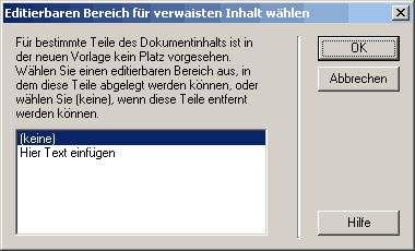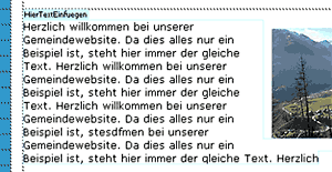 Wählen Sie die gewünschte Vorlage mit einem Doppelklick aus - Sie bekommen nun zum Beispiel dies (wichtig ist vor allem der Text "Hier Text einfügen" - das ist eben der vorhin erstellte bearbeitbare Bereich):