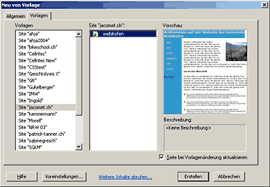 Die Vorlage braucht übrigens nicht auf dem Server zu liegen - alle Änderungen geschehen mit Standard-HTML-Code. Es genügt, wenn die Vorlage in Ihrer Site (auf Ihrem Rechner) vorhanden ist. Alles, was Sie jetzt noch tun müssen, ist, allfällige neu eingefügte Bilder und natürlich die veränderten Dateien selbst auf den Server zu kopieren - und fertig ist die Sache!