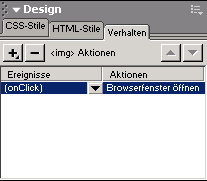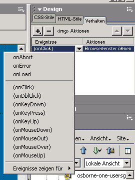 Fertig ist die Sache - wenn Sie nachträglich noch Anpassungen vornehmen wollen, kein Problem: Markieren Sie den Bild- oder Textlink zum Popup, gehen Sie zum Bedienfeld "Verhalten" und doppelklicken Sie die Funktion: